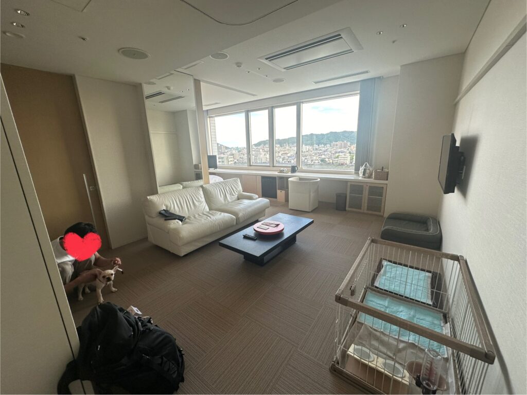 実は、環境の変化で梅子の粗相が心配だったため、滞在中は念のためおむつを着用させていました。しかし、これだけ設備が充実していたため安心して過ごせました!